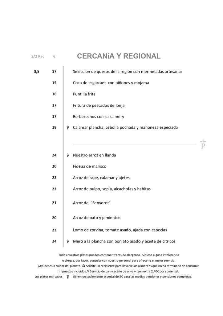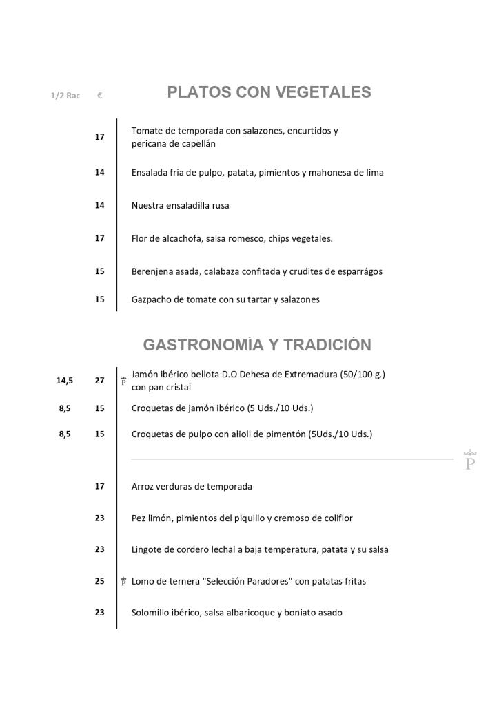 Paella, fritura de pescado, pulpo, paletilla de cabrito.