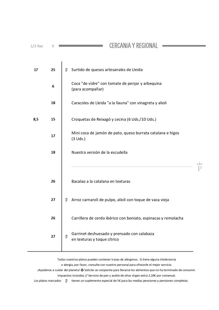 Quesos y embutidos locales, arroz “a la llauna”, caracoles, canelones y xatonada.