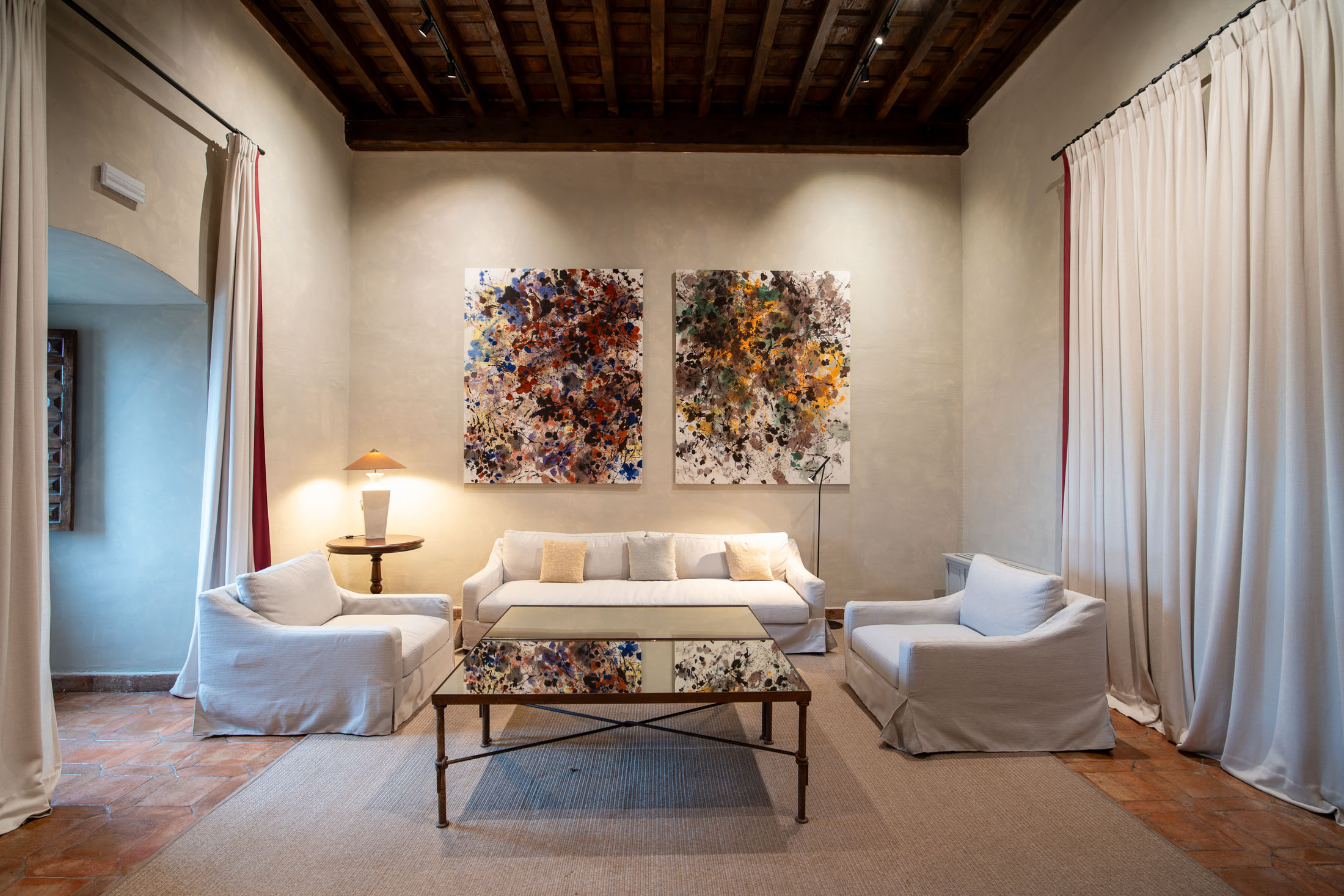 Hier finden Sie einen Ort, der gleichermaßen historisch und komfortabel ist, wo die erhabenen Türme und der große Exerzierplatz mit einem außergewöhnlichen Pool, umgeben von Oliven- und Orangenbäumen, zusammentreffen. In seinem Inneren versetzen Sie seine Salons mit Kamin und sorgfältig ausgewählter Einrichtung in eine andere Zeit und verströmen gleichzeitig ein Ambiente der Ruhe und Gemütlichkeit.