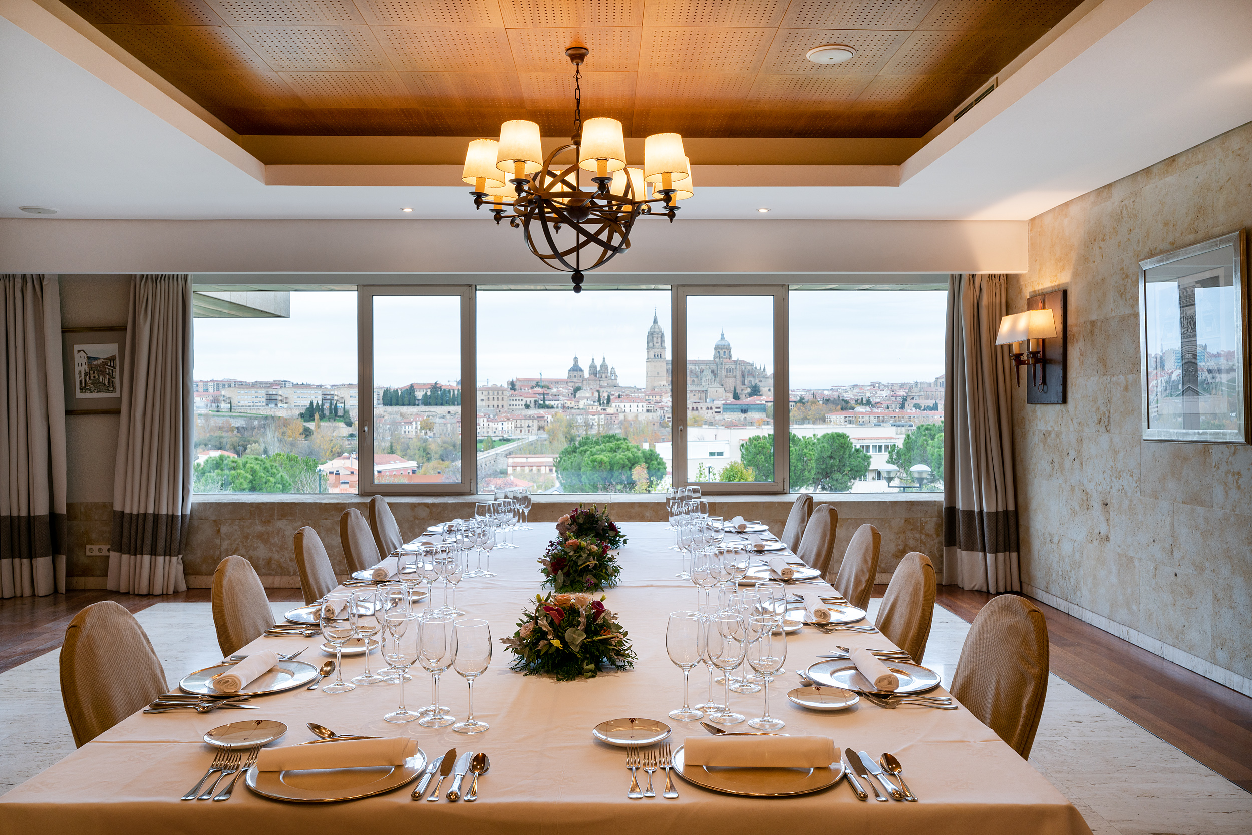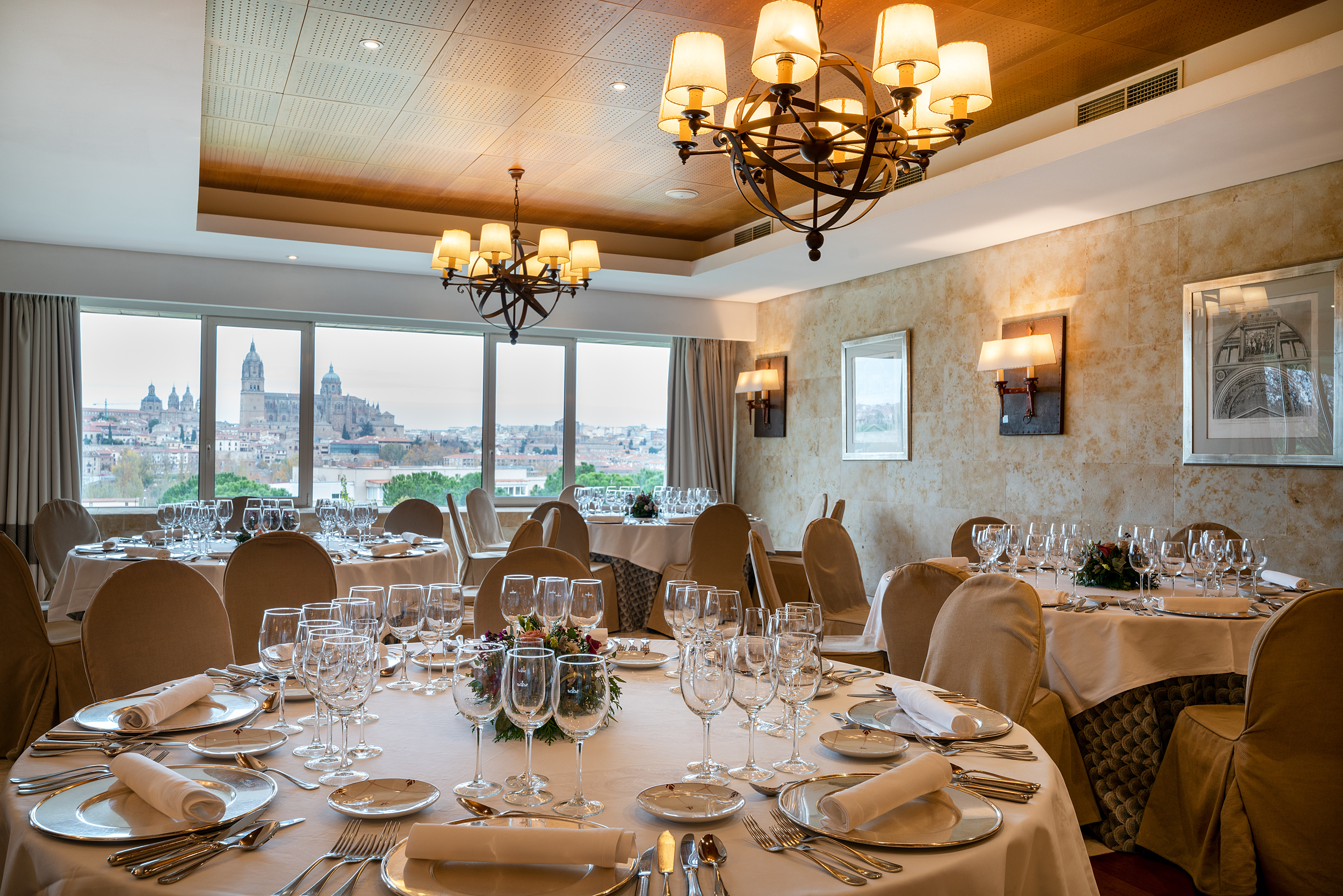 Montaje de mesa en el restaurante del Parador de Salamanca
