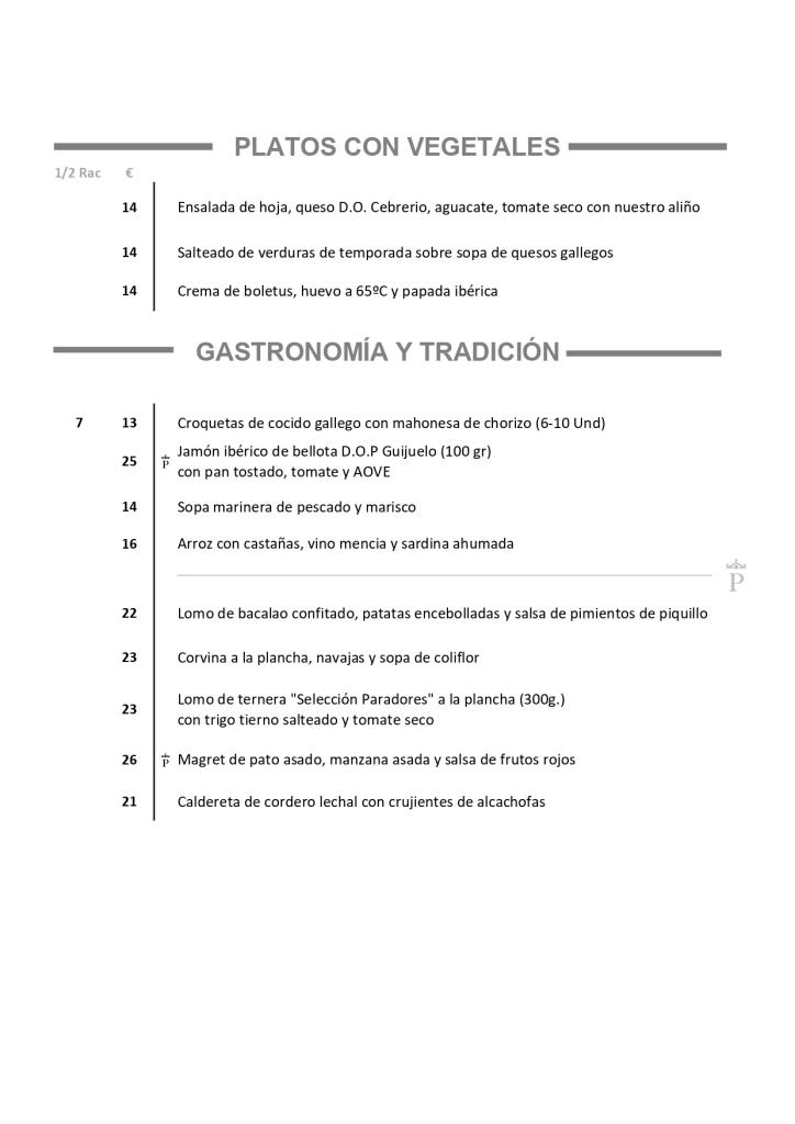 Der Parador de Cambados ist der ideale Ort, um sich von der exquisiten und unverfälschten galicischen Gastronomie verwöhnen zu lassen. Das Angebot basiert auf frischen Meeresfrüchten und Fisch aus den Rías, begleitet von einem guten Albariño-Wein, denn Cambados ist seine Hauptstadt, sowie berühmten Fleischsorten der Region und Produkten aus dem Obst- und Gemüsegarten.