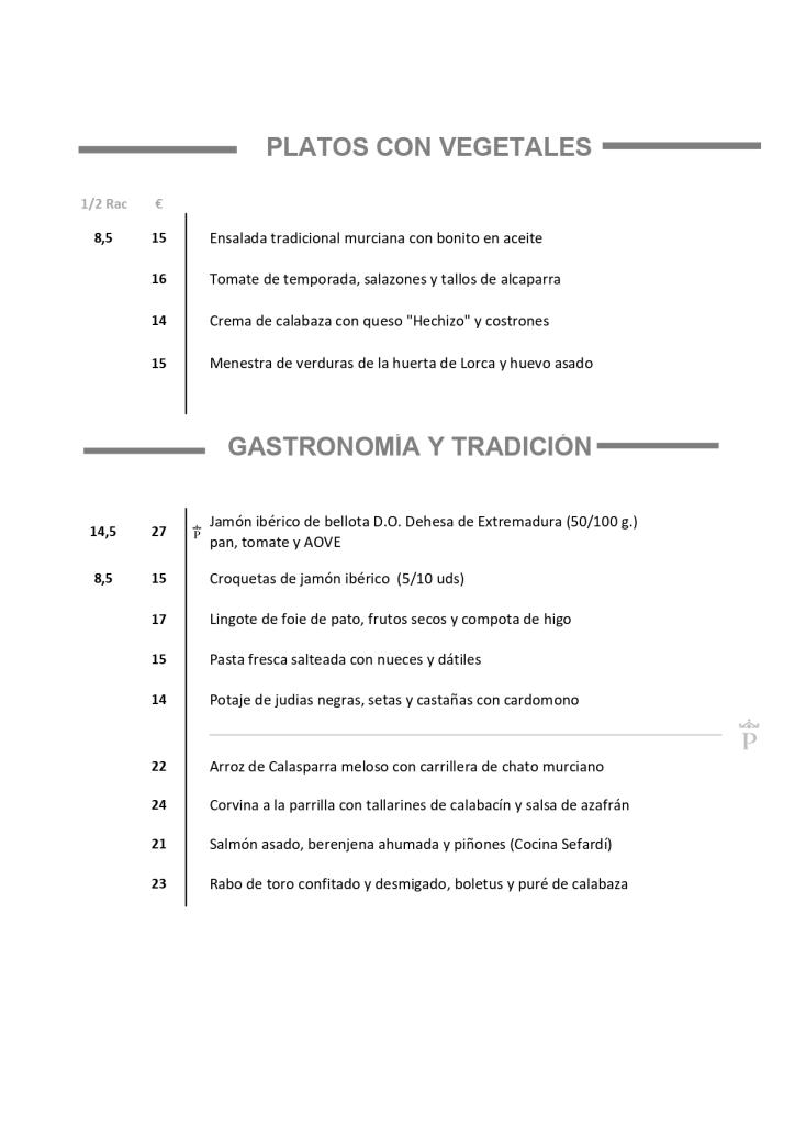 Gemüseprodukte aus den fruchtbaren Gärten von Murcia spielen eine wichtige Rolle im gastronomischen Angebot des Parador de Lorca. Ein Vorschlag, der auf der traditionellen Küche von Lorca basiert, mit arabischen, jüdischen und andalusischen Einflüssen, in der auch Fisch und Meeresfrüchte von der Küste eine wichtige Rolle spielen.