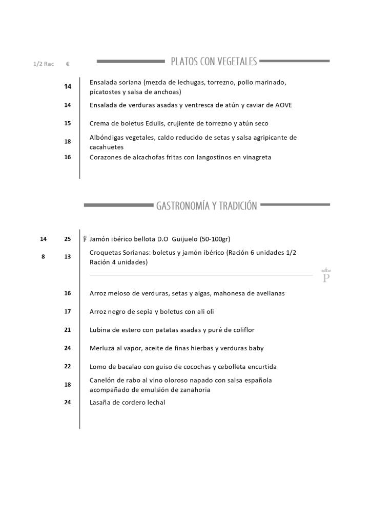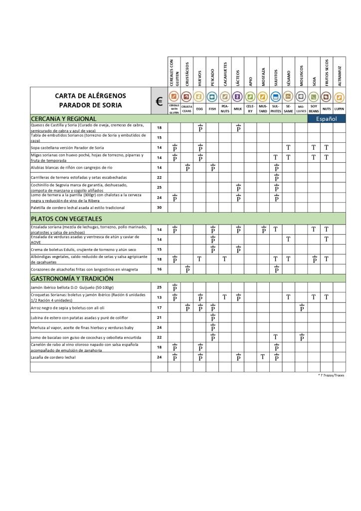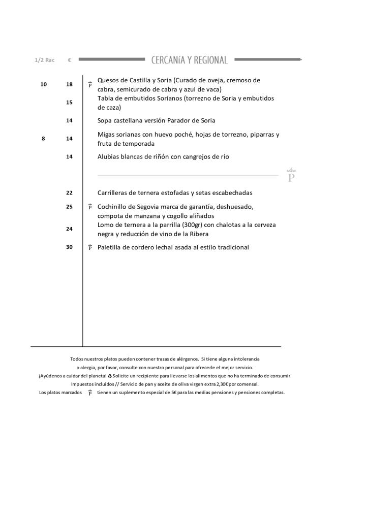 Der Parador de Soria bietet ein attraktives gastronomisches Angebot auf der Grundlage einer erneuerten traditionellen kastilischen Küche. Lokale und saisonale Produkte sind die Grundlage der traditionellen Gerichte, wobei der mykologischen Küche besondere Aufmerksamkeit gewidmet wird.