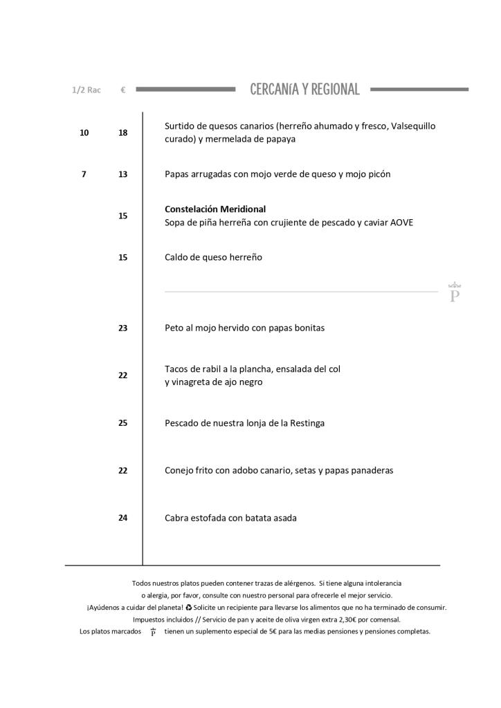 Caldo de queso herreño (El Hierro cheese broth), El Hierro fish with onion and papas arrugás (wrinkled potatoes), biscuit of figs from El Pinar.