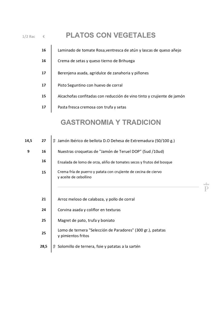 At the Parador, a stately and elegant vaulted dining room awaits you; it features thick stone walls and magnificent views of a pine forest. We offer a tempting menu of local dishes: fried free-range eggs, migas alcarreñas and torreznos, roast cabrito, cod, pickled trout, Manchego cheese and, for dessert, the famous borrachitos seguntinos. Everything is made with the best local and seasonal products...