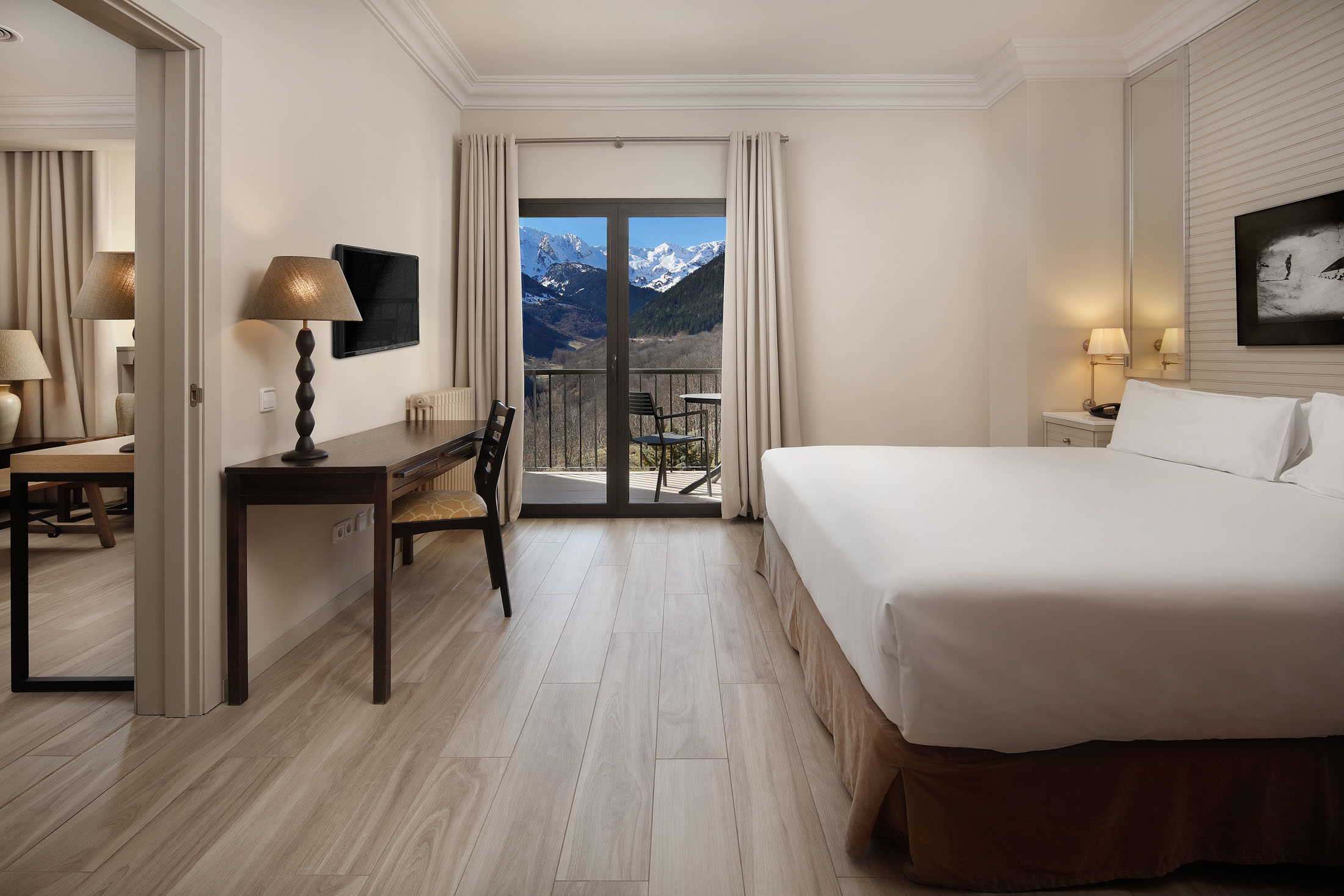 Desde 05/10/2026 hasta 30/11/2026El Parador de Vielha es el lugar ideal para disfrutar de la naturaleza del Val d’Arán y de la nieve en las cercanas pistas de esquí de Baqueira-Beret. En el Parador podrás disfrutar de un servicio de masajes, relajarte en el spa, en la piscina exterior, en la terraza solárium, en las tumbonas, el jacuzzi y en la sauna. El Parador de Vielha cuenta también con un parque infantil, un interior elegante y luminoso, amplios salones con grandes ventanas desde los que contemplar las impresionantes montañas del Pirineo Catalán, y un precioso comedor circular rodeado de un gran jardín. Además, algunas de sus habitaciones tienen terraza con vistas al valle.