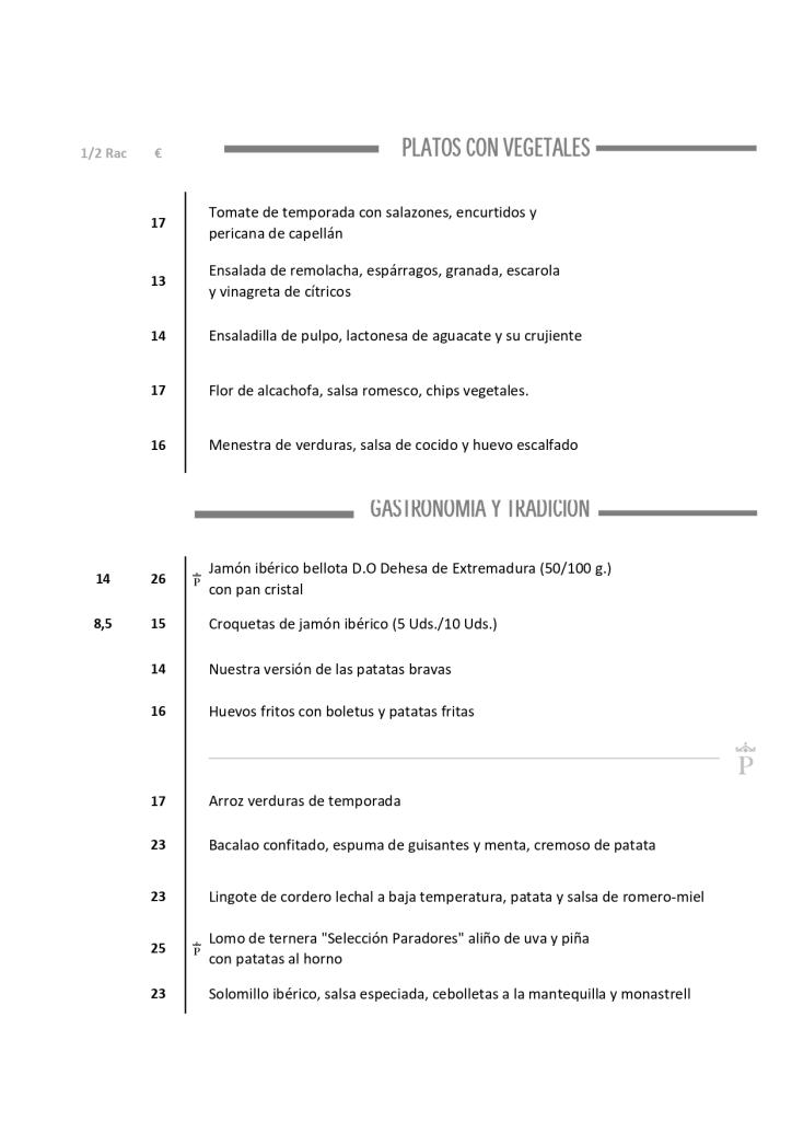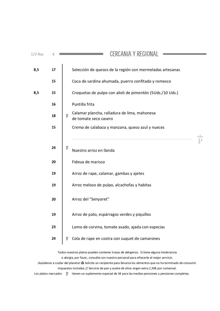 Paella, fritura de pescado, pulpo, paletilla de cabrito.