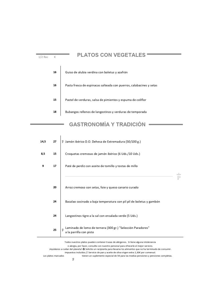La gastronomía de La Gomera, como su orografía, es agreste e intensa. La excelencia del mar que rodea la isla y sus cultivos particulares son los ingredientes principales de la cocina sencilla y sabrosa del Parador gomero. Una carta basada en la cocina tradicional con platos típicos como el almogrote, las papas arrugadas, sus mojos o los pescados autóctonos.