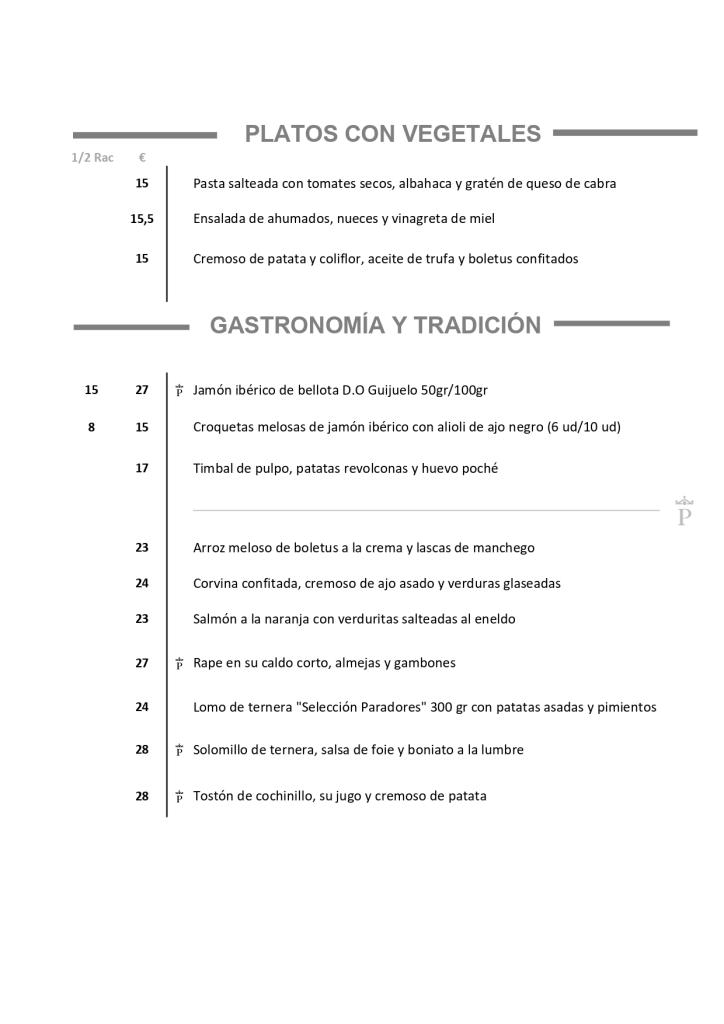 Las especialidades regionales manchegas son el fundamento de la propuesta gastronómica del Parador de Manzanares. Una cocina de base tradicional, en la que no faltan platos emblemáticos del recetario popular que ya inmortalizó Miguel de Cervantes en El Quijote, pero que, al mismo tiempo, reinterpreta en versión actual con fidelidad a los ricos productos de la despensa local.