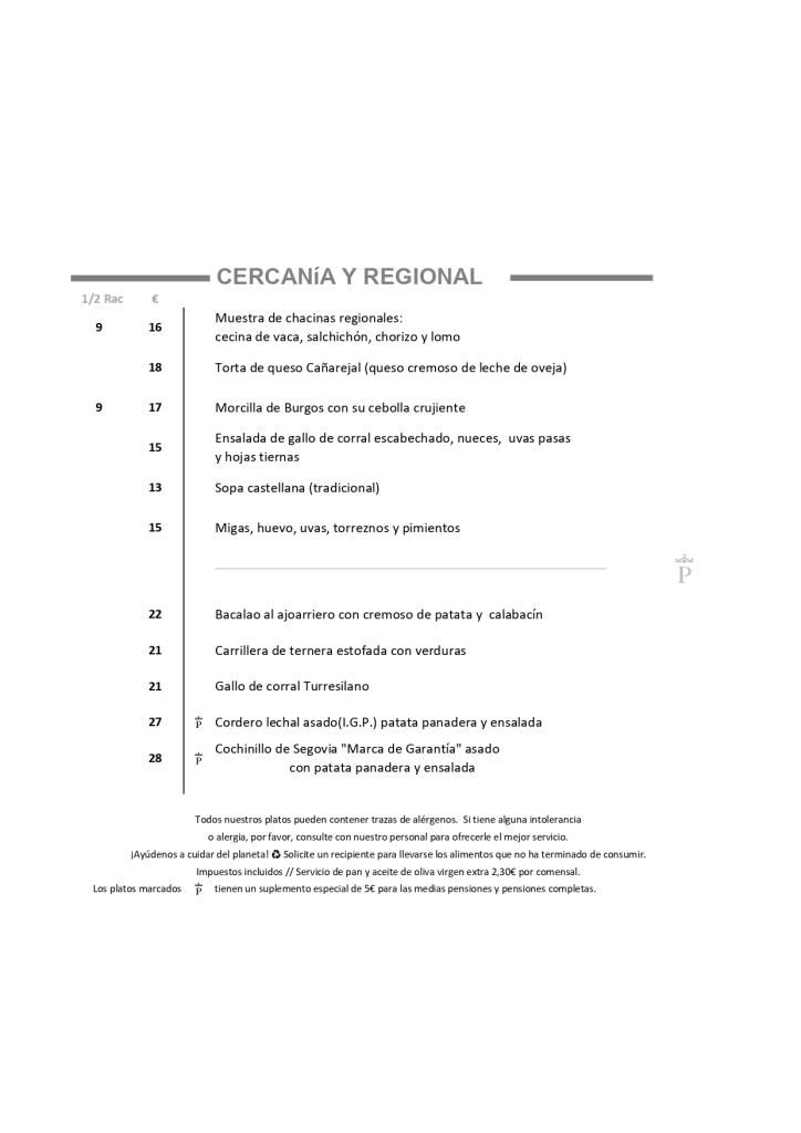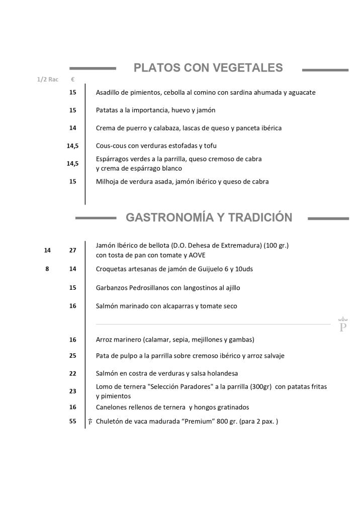 Gallo de corral tordesillano, cordero lechal asado, cochinillo asado al estilo de Arévalo.