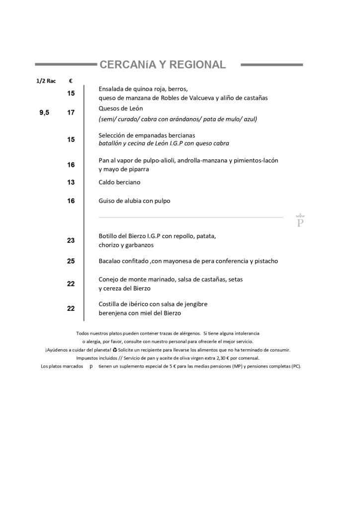 En el restaurante del Parador podrás degustar la genuina gastronomía berciana puesta al día, con el botillo como el plato más destacado de la cocina regional., que se presenta principalmente con cachelos y repollo, el pulpo con tomate dulce y gazpachuelo de pimentón es otro de sus clásicos y en la parte dulce su versión de Las Médulas, nos hará degustar un postre del mítico paisaje del Bierzo.