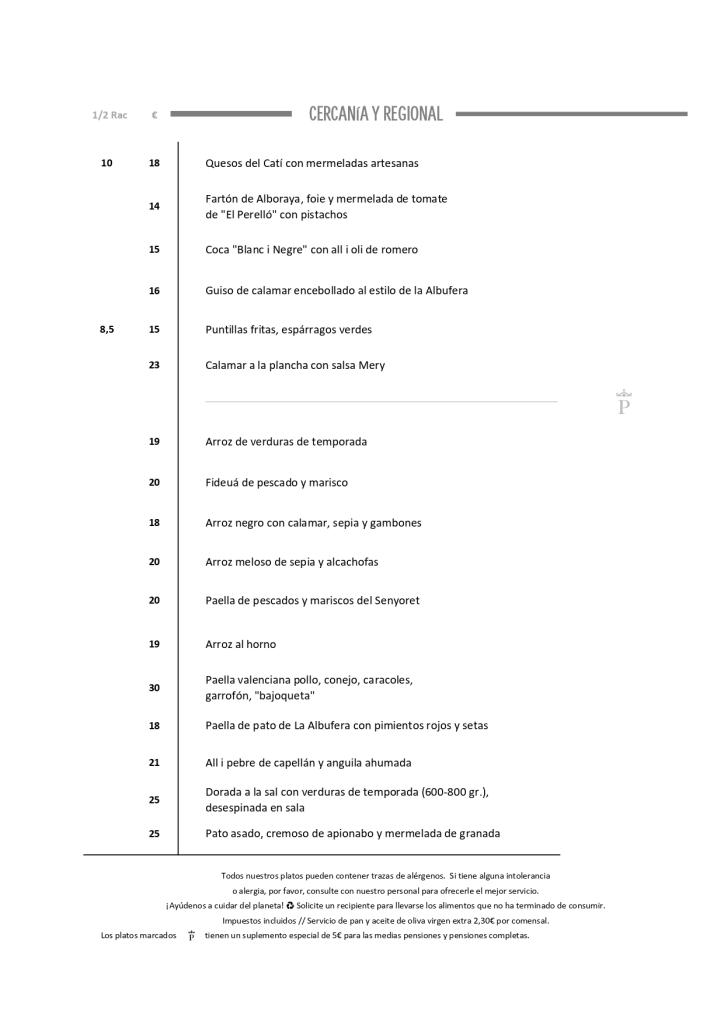 Carta de arroces, aperitivos para compartir, postre de naranjas.