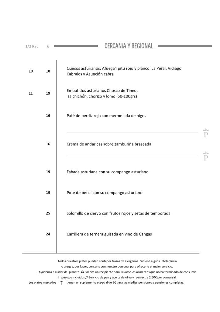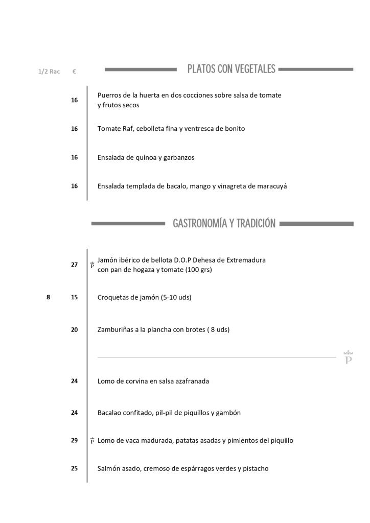 Carta del Restaurante en el Parador