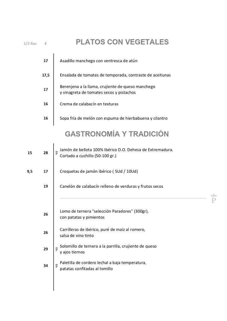 La gastronomie du Parador d’Alarcón est basée sur la cuisine traditionnelle de Cuenca. Elle évoque le goût du ragoût de La Mancha, du morteruelo, de la perdrix marinée, de la ratatouille, du fromage de brebis et des célèbres vins de la région.