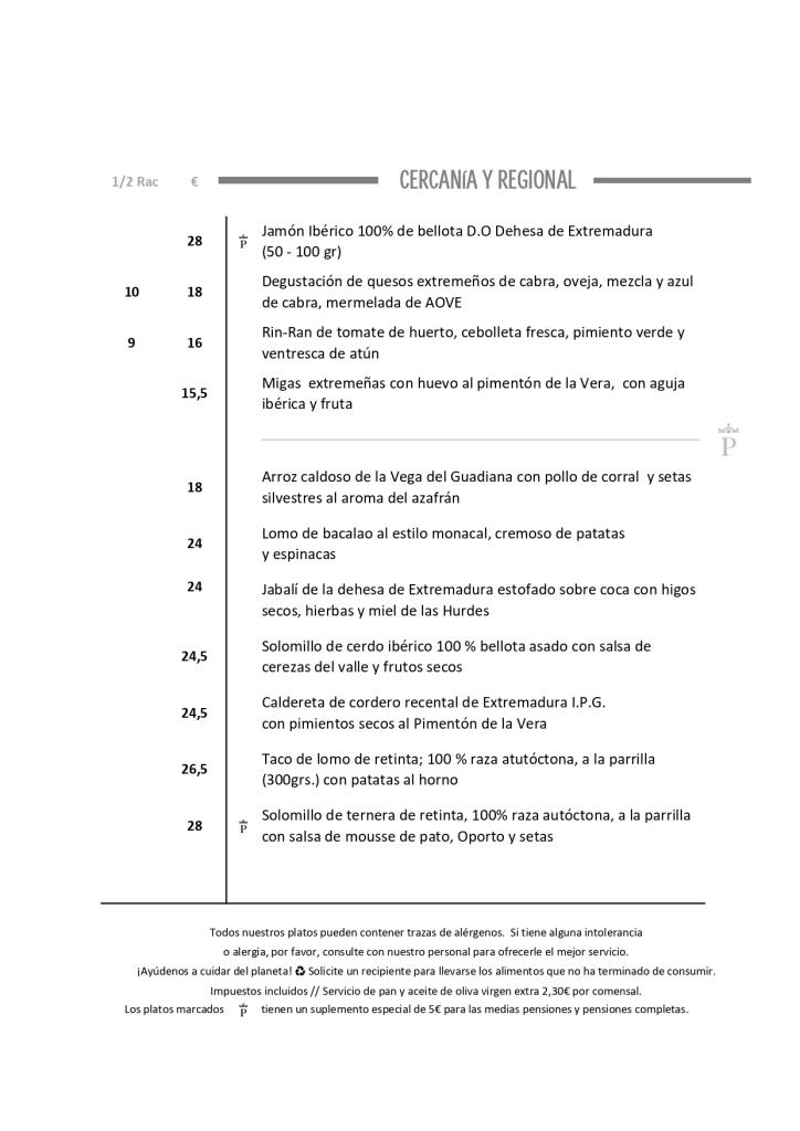 Le restaurant occupe la salle capitulaire, avec une superbe frise de carreaux polychromes Talavera du XVIe siècle, un plafond à caissons avec de grosses poutres et un banc en granit. Ce lieu magnifique vous permettra de déguster les produits de la vallée de Jerte : poivrons, tomates, chardons sauvages, champignons, gibier, porcs ibériques de race 100 % autochtone et cerises, base de plats typiques tels que la morue à la monastique, le ragoût d’agneau ou les migas extremeñas (panures frites).