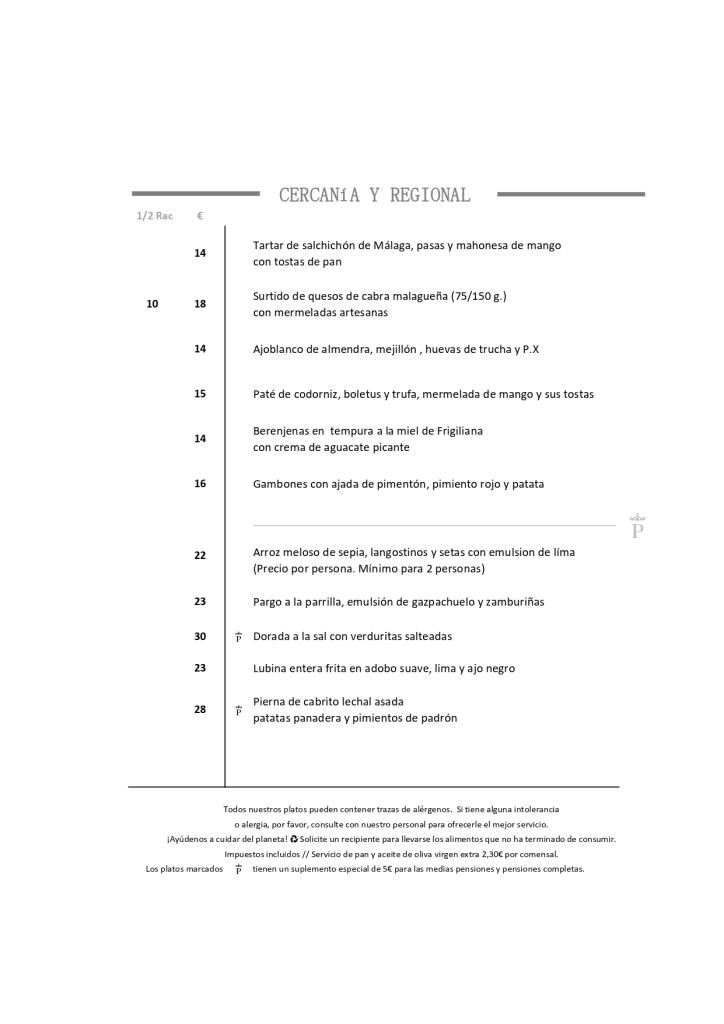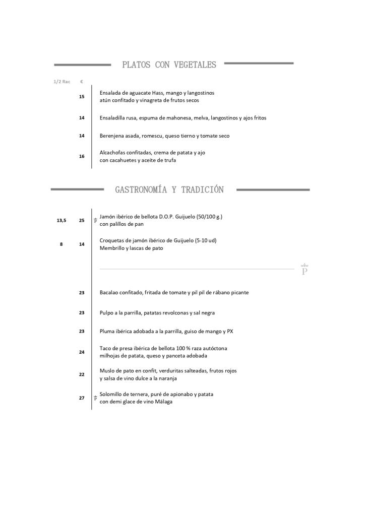 Aquí disfrutarás de una oferta gastronómica de comida típica andaluza que se actualiza según época del año aprovechando los productos de temporada. Una propuesta en la que destaca el pescado fresco y pone en valor platos del recetario tradicional malagueño. Entre nuestras especialidades podrás probar gazpachuelo malagueño, zoque y ajoblanco, arroces caldosos o berenjenas en tempura, junto a opciones cárnicas como el cabrito o la presa ibérica.
