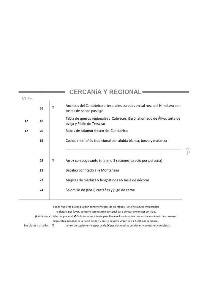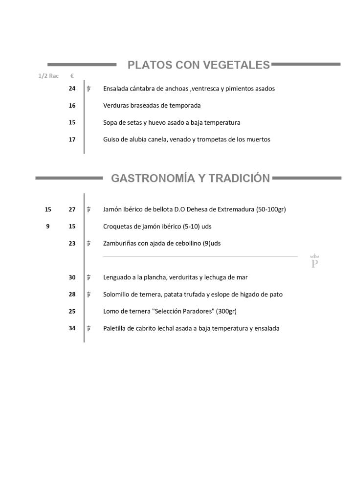 Carta del Restaurante en el Parador