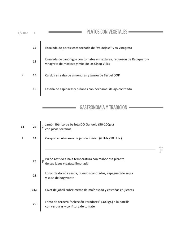 Carta del Restaurante en el Parador